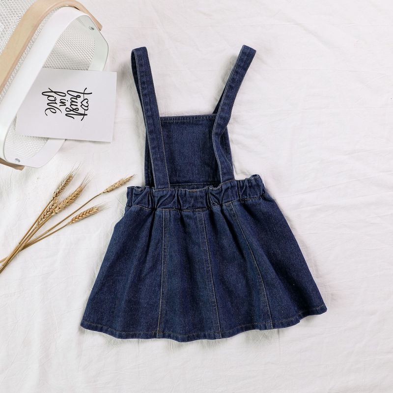 送料無料ジャンパースカート サロペットスカート オーバーオール キッズ デニム 女の子 胸当て 前ボタン 前ポケット ガーリー ヘビロテ カジュアル 100 110 120 130 140