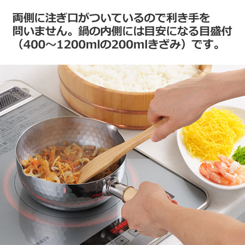 鍋の内側には目安になる目盛付(400〜1200mlの200mlきざみ)です。