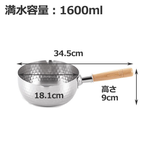 ■材質 本体:ステンレス、ハンドル:天然木 ■サイズ 約34.5×18.1×9cm ■満水容量:1600ml ■重量 約470g ■生産国 日本 ■メーカー ヨシカワ ≫≫その他雪平鍋はこちらから≪≪